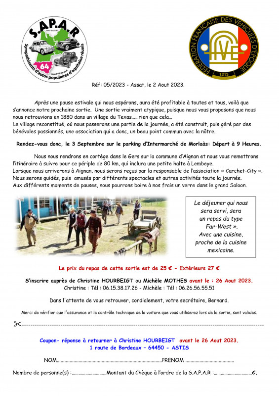 Bulletin d'adhésion à la SAPAR